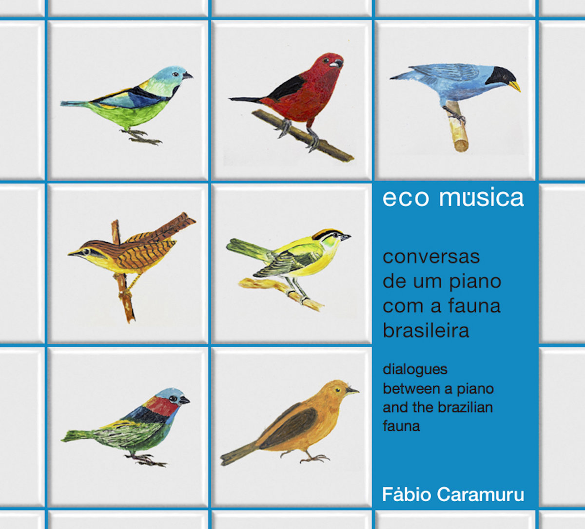 Fabio Caramuruは、フランスで活躍したブラジル出身の女流クラッシック・ピアニストのMagda Tagliaferroの最後の生徒ということで、クラシックをベースにしたスタイルではあるものの、内面的な表現をさらりと表現出来る即興的な部分と、愛情豊かで濃やかな親しみやすさ、古典的なバランス感覚を持ち併せているのですが、2007年にリリースされている、トム・ジョビン・カバー独奏アルバム「PIANO -TOM JOBIM POR FOBIO CARAMURU」では、シンプルにピアノの演奏のみ、アレンジも原曲を忠実に演奏したもので、Fabio Caramuruの個性はさりげなく織り込んでいる…にとどまっていたのですが、この「eco musica – conversas de um piano com a fauna brasileira」では、彼本来の個性が存分に放たれた、邪気のない流麗なピアノと、詩的な味わいを堪能できる作品と言えるでしょう。